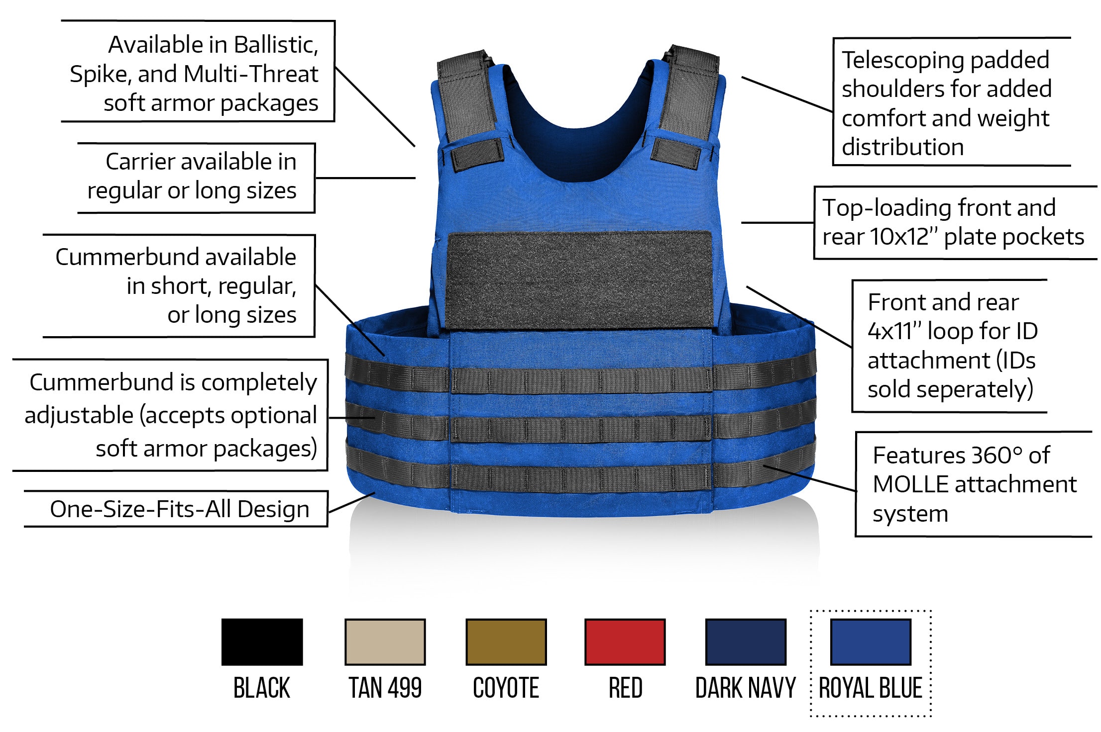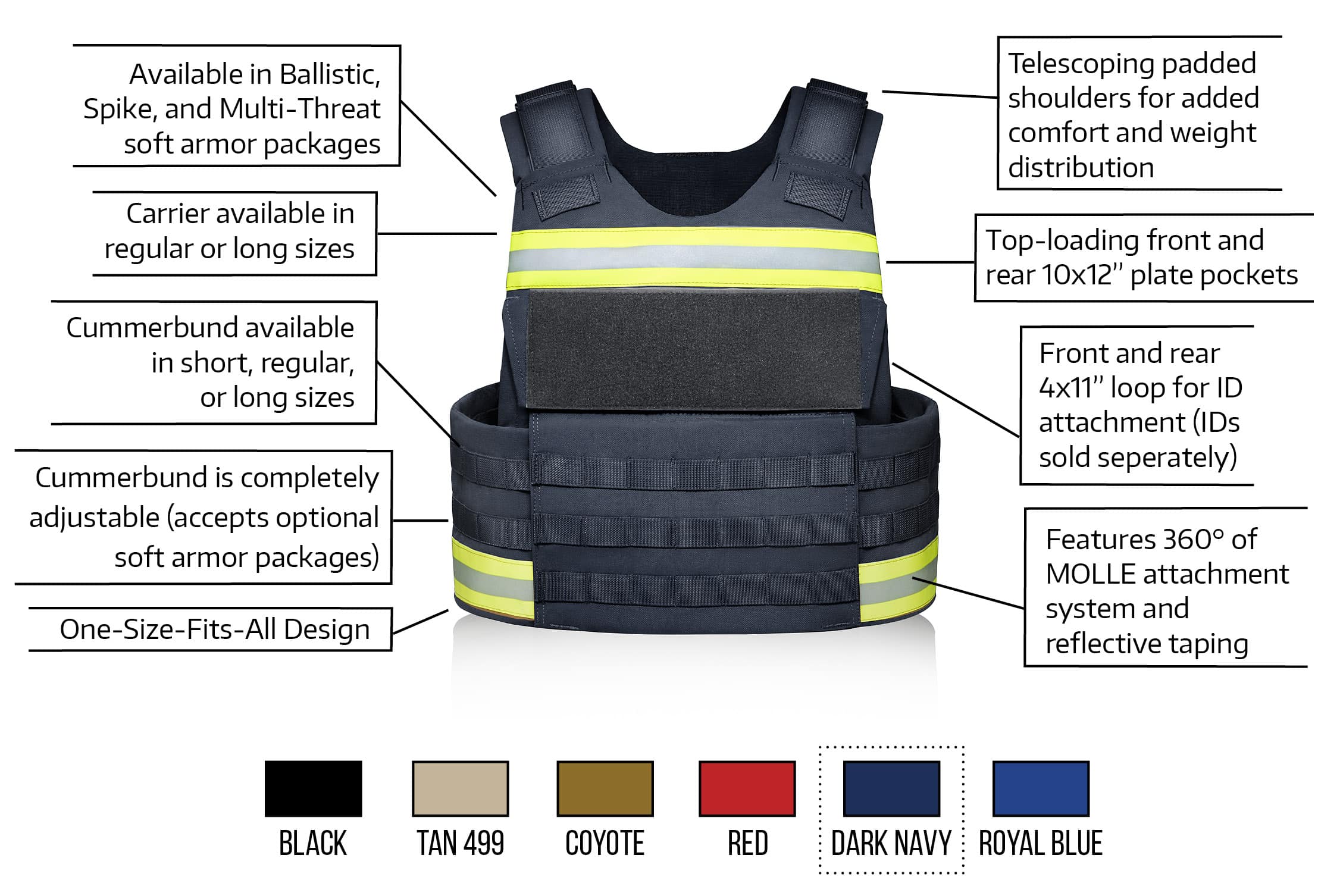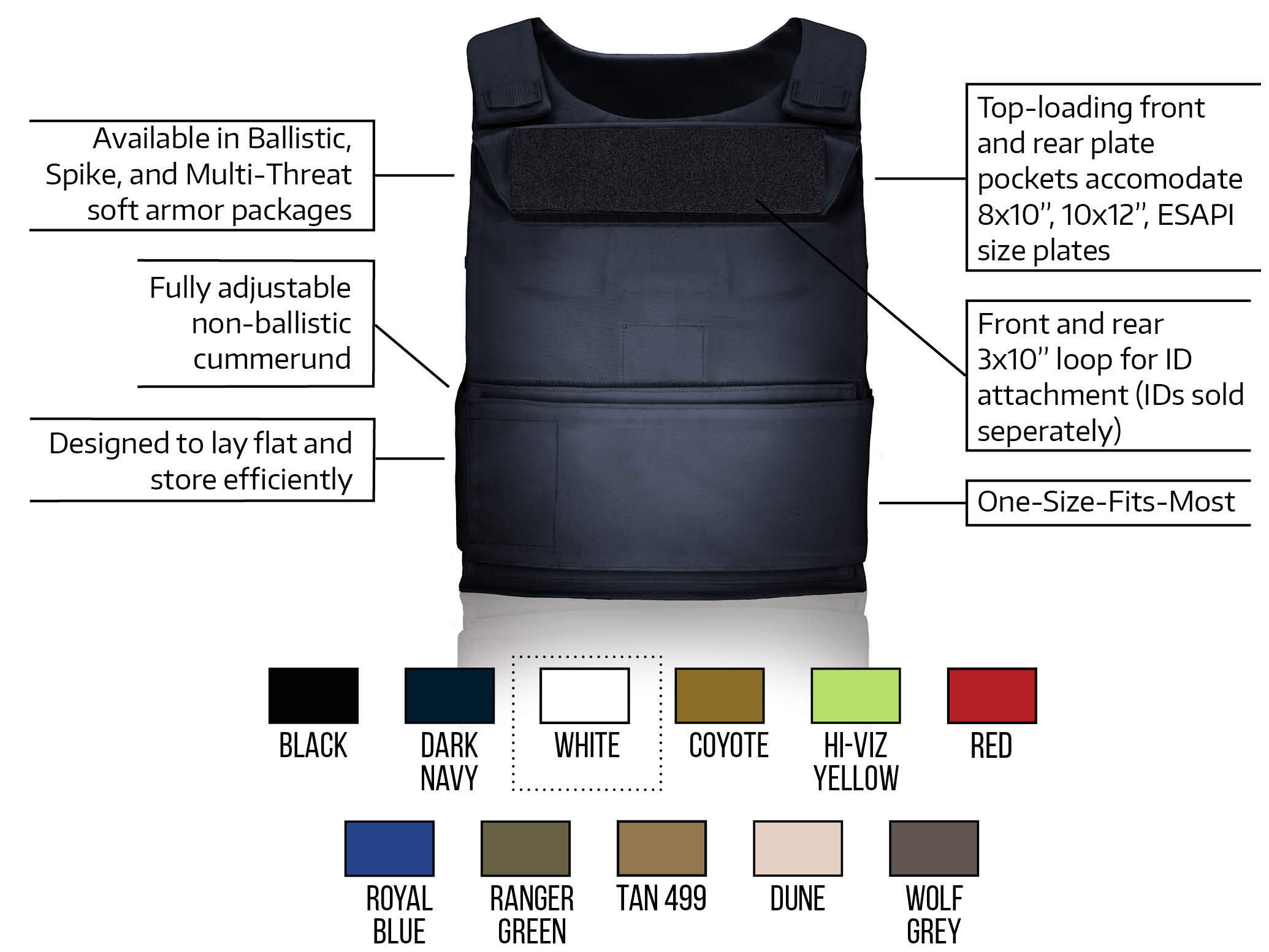 Soft Armor Ballistics Level II, IIIA, or Multi-Threat
