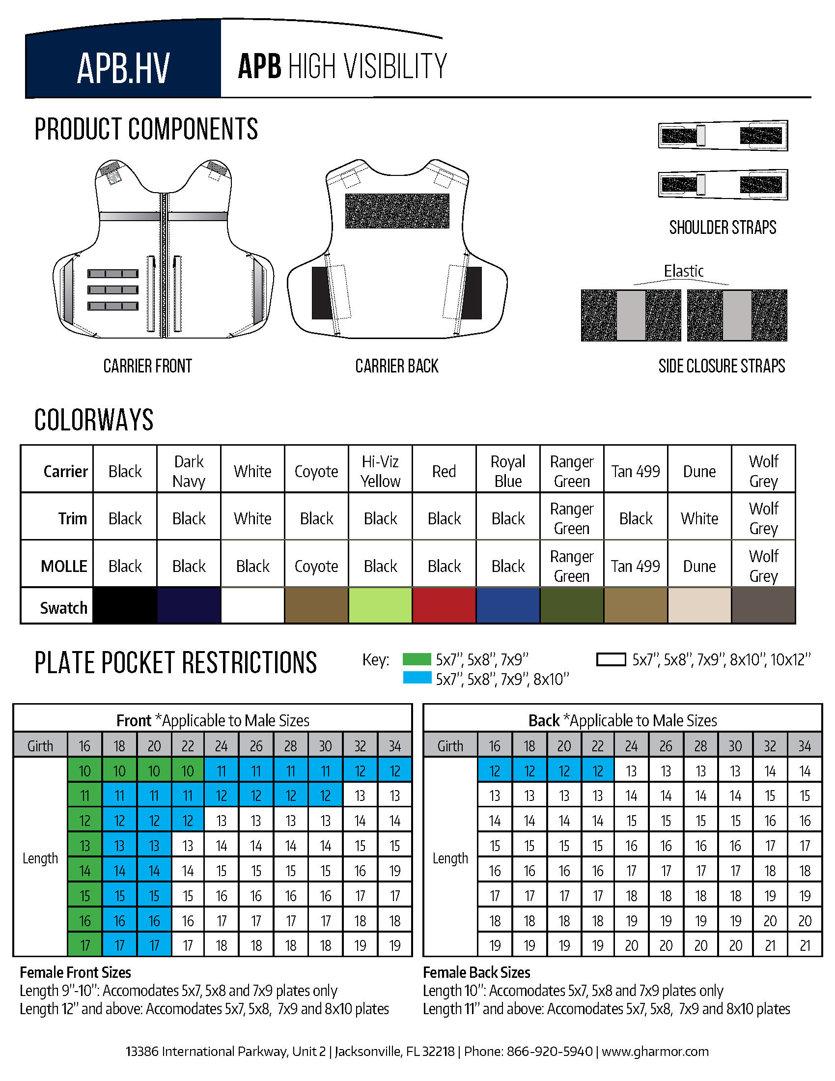 | Plate Pocket: | 5×7", 5×8", 7×9", 8×10” and 10×12” front and rear rifle plate pockets (size restrictions apply). |