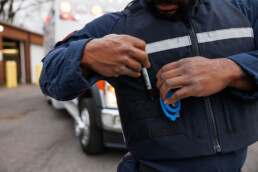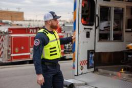 Optional 3×3″ or shield‑shape loop for badge attachment on wearer’s left chest